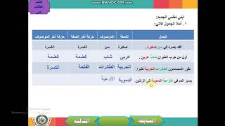 | الجملة | الصفة والموصوف | مفرد - مثنى - جمع | مذكر - مؤنث | معرفة - نكرة | رفع - نصب - جر | العلامة الإعرابية | |
