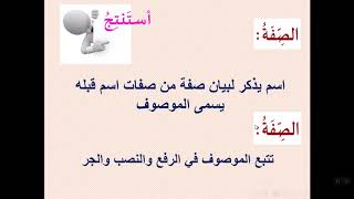 - أحدد الصفة والموصوف في المثال الأول. الصفة: العربية - الموصوف: اللغة.